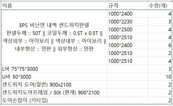 샌드위치 판넬용 문을 찾을수가 없는데 취급을 안하시는건지 궁금합니다