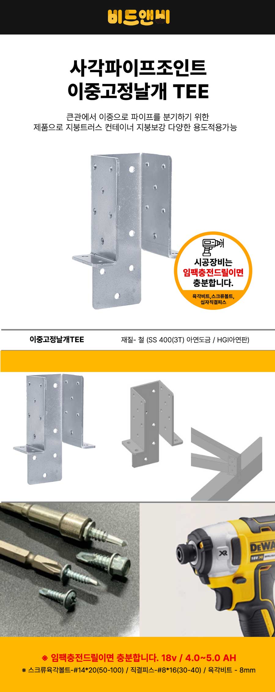 [둑스] 사각파이프조인트 이중고정날개 TEE 요약정보 및 구매