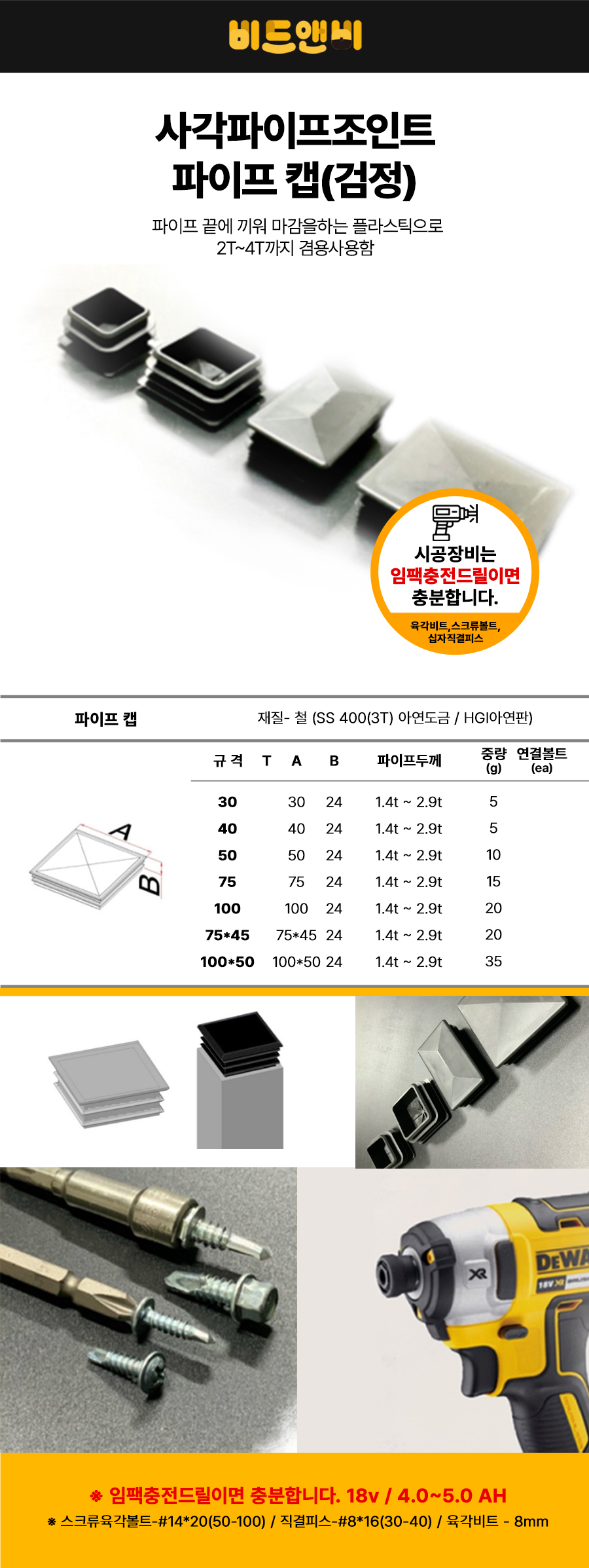 [둑스] 사각파이프조인트 파이프 캡(검정) 요약정보 및 구매