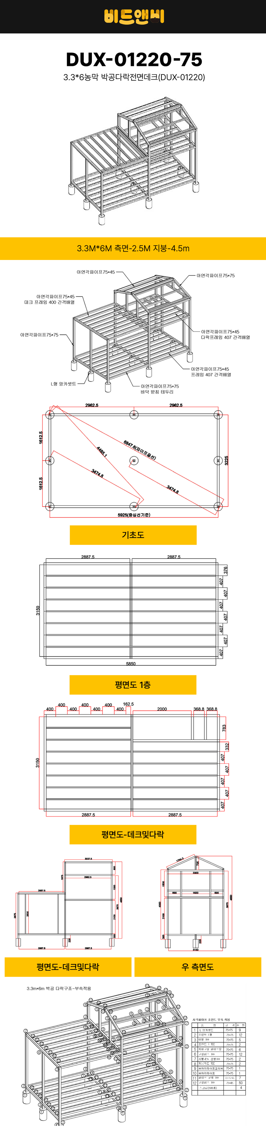 3.3M*6M 측면-2.5M 지붕-4.5m / 아연각파이프 (2t)