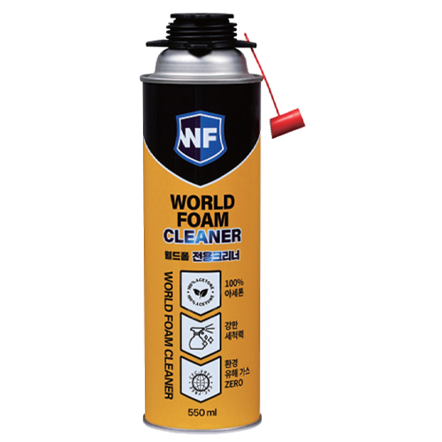 월드폼 크리너는 경화 전의 폴리우레탄폼을 세척, 제거하는 제품으로 강한 세척력과 분사력으로 전용 건, 노즐, 벨브 등을 깨끗이 세척할 수 있습니다.